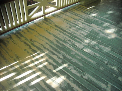Susan spread wood putty over the porch today, smoothing it into the cracks and crevasses that abound on the deck. She is hoping it will help smooth things out but is concerned the wood putty will just crack and peel after a couple of years. I guess we'll find out.
